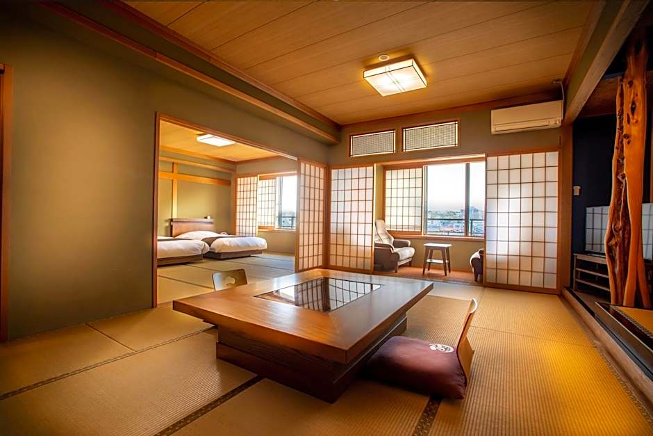 The private open-air bath is a top feature of this suite. This spacious suite comes with 1 living room, 1 separate bedroom and 1 bathroom with a bath and free toiletries. This suite has air conditioning, tatami, a flat-screen TV and a terrace. The unit has 2 beds and 2 futons.