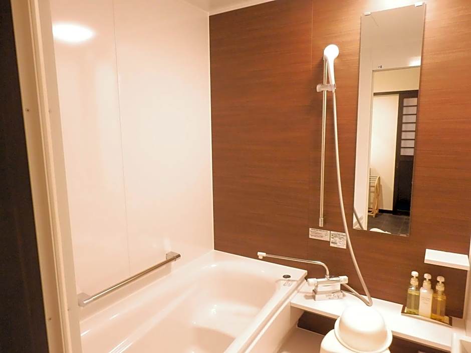 The spacious quadruple room features air conditioning, tatami, as well as a private bathroom boasting a bath and a shower. The quadruple room provides a safe deposit box, an electric kettle, a sofa, yukata, as well as a flat-screen TV. The unit has 2 beds and 2 futons.